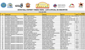 Publicamos la lista de inscritos del 28º Rallysprint Memorial Tomás Viera, prueba que celebrará en la isla de Lanzarote este sábado.