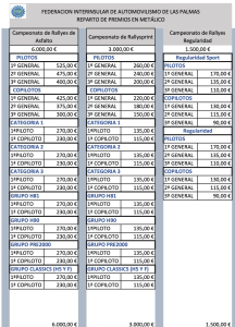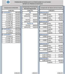Como aprobó en su día la Asamblea General de la Federación Interinsular de Automovilismo de Las Palmas, el presidente Miguel Ángel Domínguez presentó a la Comisión de Deportistas el planteamiento del reparto de premios y finalmente ha recibido el visto bueno de todos. En dicha reunión se acordó la tabla de premios, cuyo montante total asciende a 23.500 euros. Una cifra inaudita en nuestro deporte y que sentará un positivo precedente, ya que desde hace muchos años los premios en metálico estaban desterrados de casi todos los campeonatos, tanto dentro como fuera de las Islas Canarias.