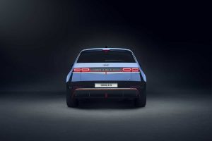 El modelo N se distingue aún más del IONIQ 5 estándar con un cambio de proporciones. Es 20 mm más bajo en general, 50 mm más ancho en la parte inferior para alojar neumáticos más anchos y 80 mm más largo.