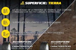 Los neumáticos disponibles para las distintas categorías de este rallye son los siguientes: