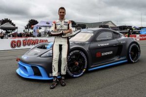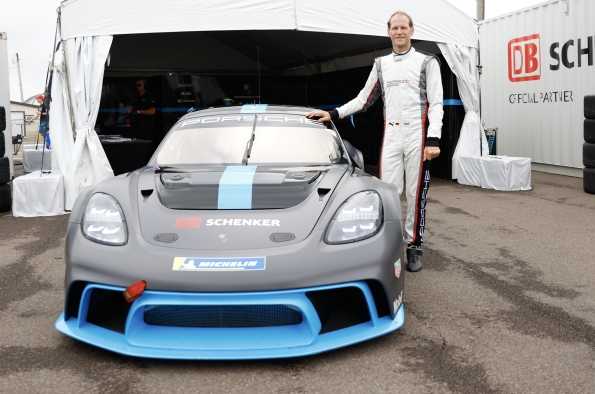 Los entrenamientos del IMSA Michelin Pilot Challenge acaban de terminar en Watkins Glen, bajo un cielo plomizo. Los mecánicos han desconectado el cable del Porsche GT4 e-Performance cuando su batería está completamente cargada. Hay energía de sobra para la demostración, incluso aunque se expriman a menudo los 1.088 caballos (800 kW) de potencia máxima. El prototipo eléctrico está listo para salir, solo falta el piloto. Estaba previsto que fuera Jörg Bergmeister, pero su avión llega con retraso.