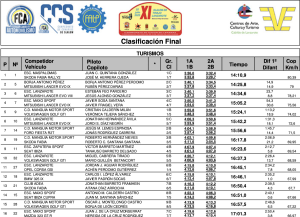 Terceros fueron los lanzaroteños Esteban Feo y Jesús Alonso (Mitsubishi Lancer Evo VIII), que se quedaban a 23,7 de la cabeza y a 8,8 del segundo lugar.