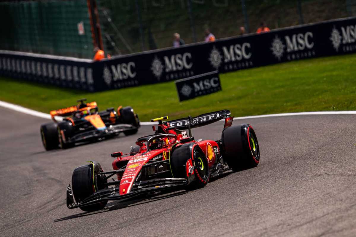 - Cuarto en la parrilla de salida, el piloto de Ferrari se disponía a atacar a Lewis Hamilton por el interior de La Source cuando ha recibido el impacto del McLaren de Oscar Piastri por el interior.