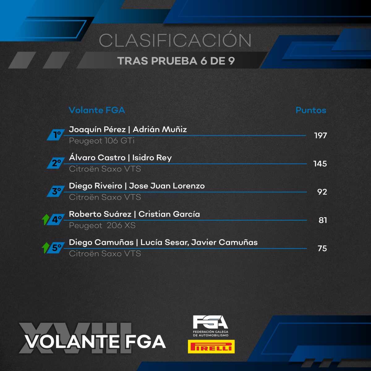 O Carballiño fue escenario de la sexta cita de la temporada en el Volante FGA, a la que se llegaba tras el dominio del equipo formado por Joaquín Pérez y Adrián Muñiz en las dos citas anteriores, logrando el pleno de scratchs en ambas, que les permitía llegar con una sólida renta respecto a Álvaro Castro, segundo clasificado.