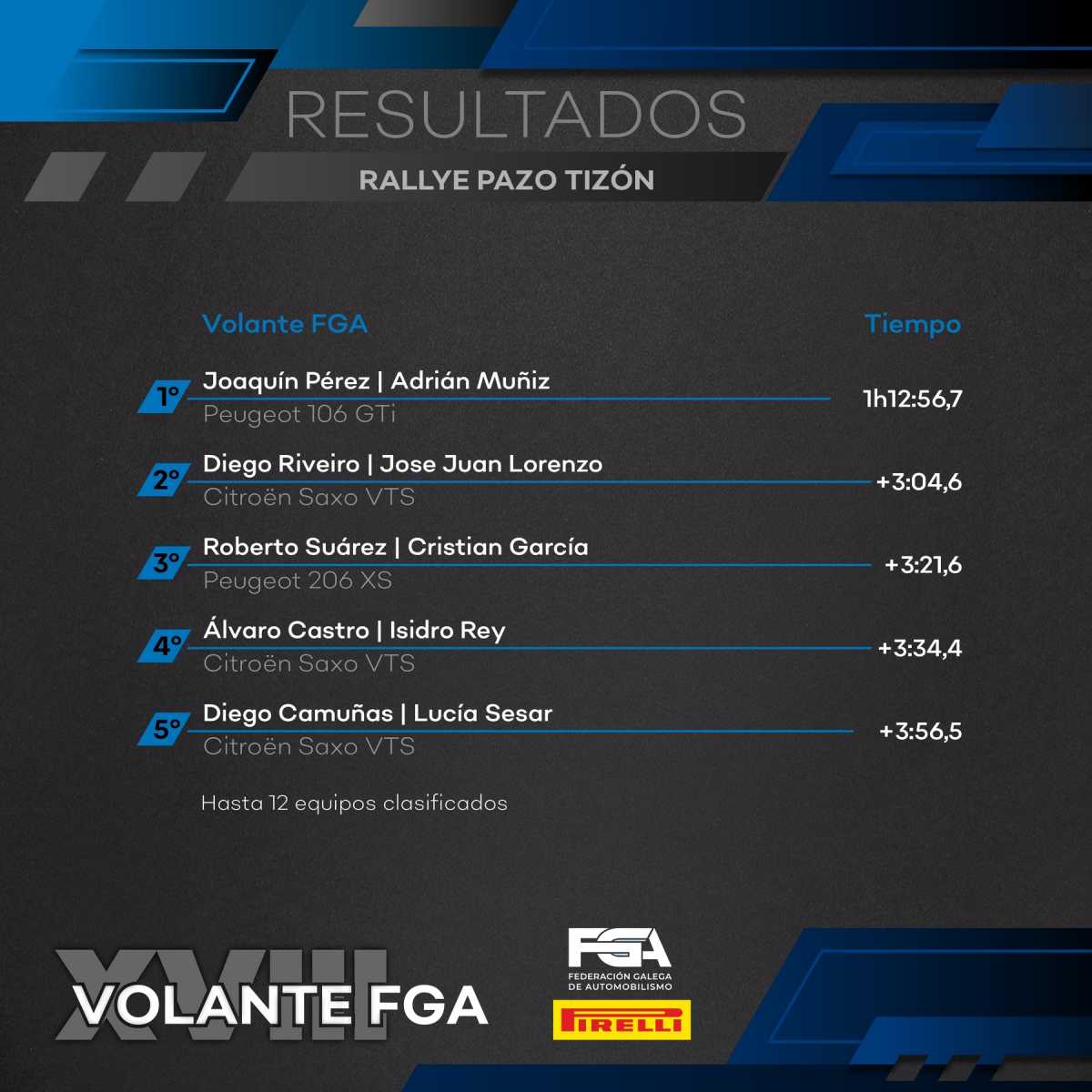 Joaquín Pérez y Adrián Muñiz completaban de nuevo una actuación excelsa imponiéndose en todas las especiales y ganando por más de tres minutos de ventaja, lo que les da opción a hacerse con el título en la próxima cita puntuable, para lo cual dependen de sí mismos y otro triunfo les otorgaría el campeonato. Diego Riveiro defendió muy bien la segunda plaza para sumar un buen botín de puntos, por delante de Roberto Suárez y un Álvaro Castro, que nuevamente luchando a contracorriente se quedaba a las puertas del podio.