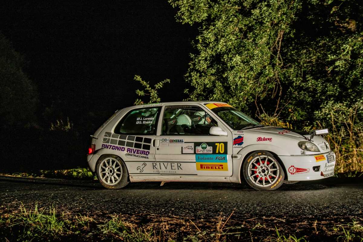 Desde los primeros compases, el Pazo Tizón siguió el mismo guión que los dos rallyes anteriores, con Pérez poniendo tierra de por medio respecto a sus rivales. Castro se situaba segundo tras la primera sección, pero en la segunda pasada por Cenlle iba a sufrir problemas con las bobinas, que dejaban al motor de su Saxo rodando con la mitad de cilindros en funcionamiento, y era superado por Diego Riveiro y Roberto Suárez, que culminaban el ecuador de la prueba en puestos de podio y a casi dos minutos de la cabeza.