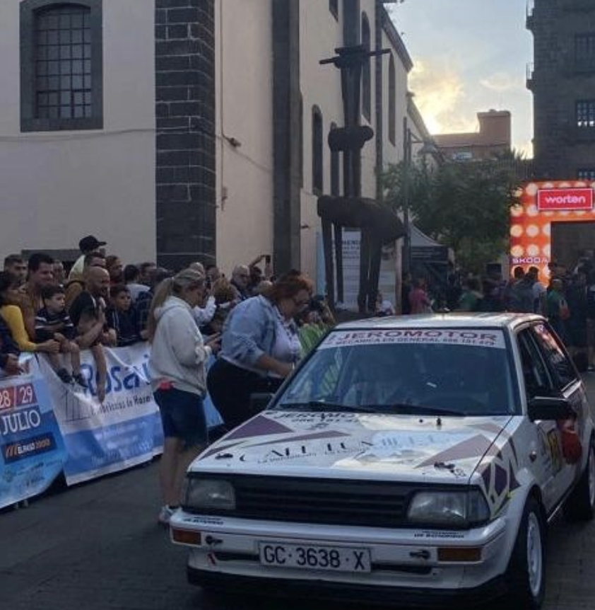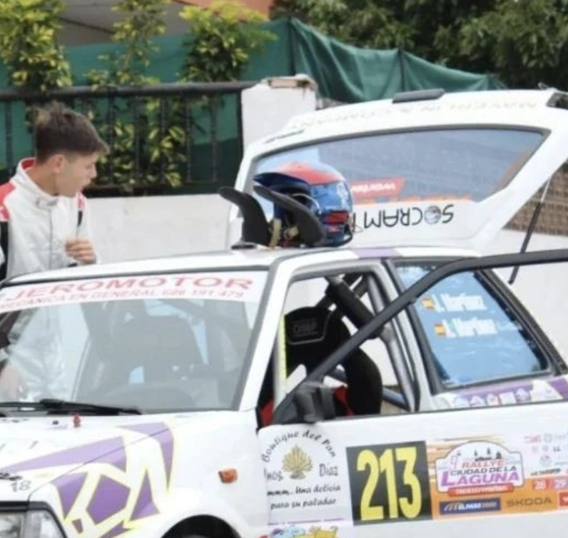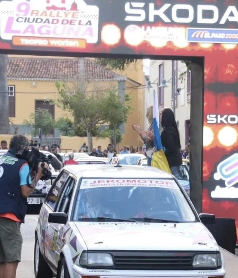 El joven Adán Martínez pudo cumplir su sueño de debutar como copiloto. Lo hizo en el Rally Ciudad de La Laguna junto a su padre Jerónimo Martínez, logrando llevar el Toyota Starlet a la meta de la cita tinerfeña. Su madre le cedió el testigo en el sillón del miedo y tanto su familia xomo amigos no se quisieron perder un día muy especial para todos