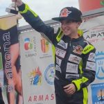 Jonay Pérez muestra su disconformidad por lo que entiende un error ajeno que ha propiciado que a su hijo Jorge no le den unos puntos ganador en la pista.