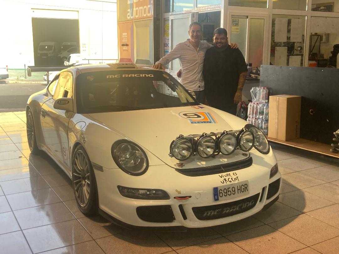 El piloto grancanario está Alberto Monzón con un niño en el Día de Reyes con la llegada de su nuevo Porsche 997 GT3, unidad que adquiría en tierras catalanas al piloto Jordi Zurita.