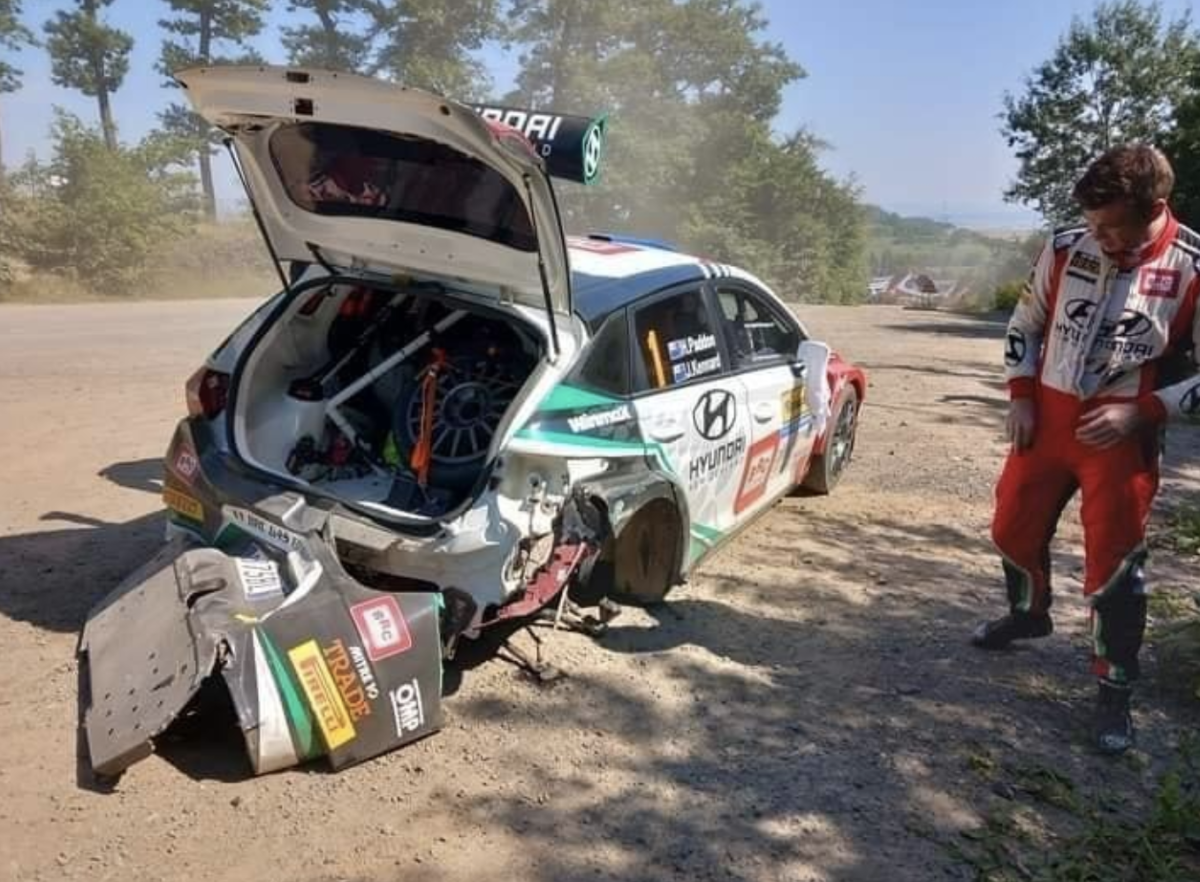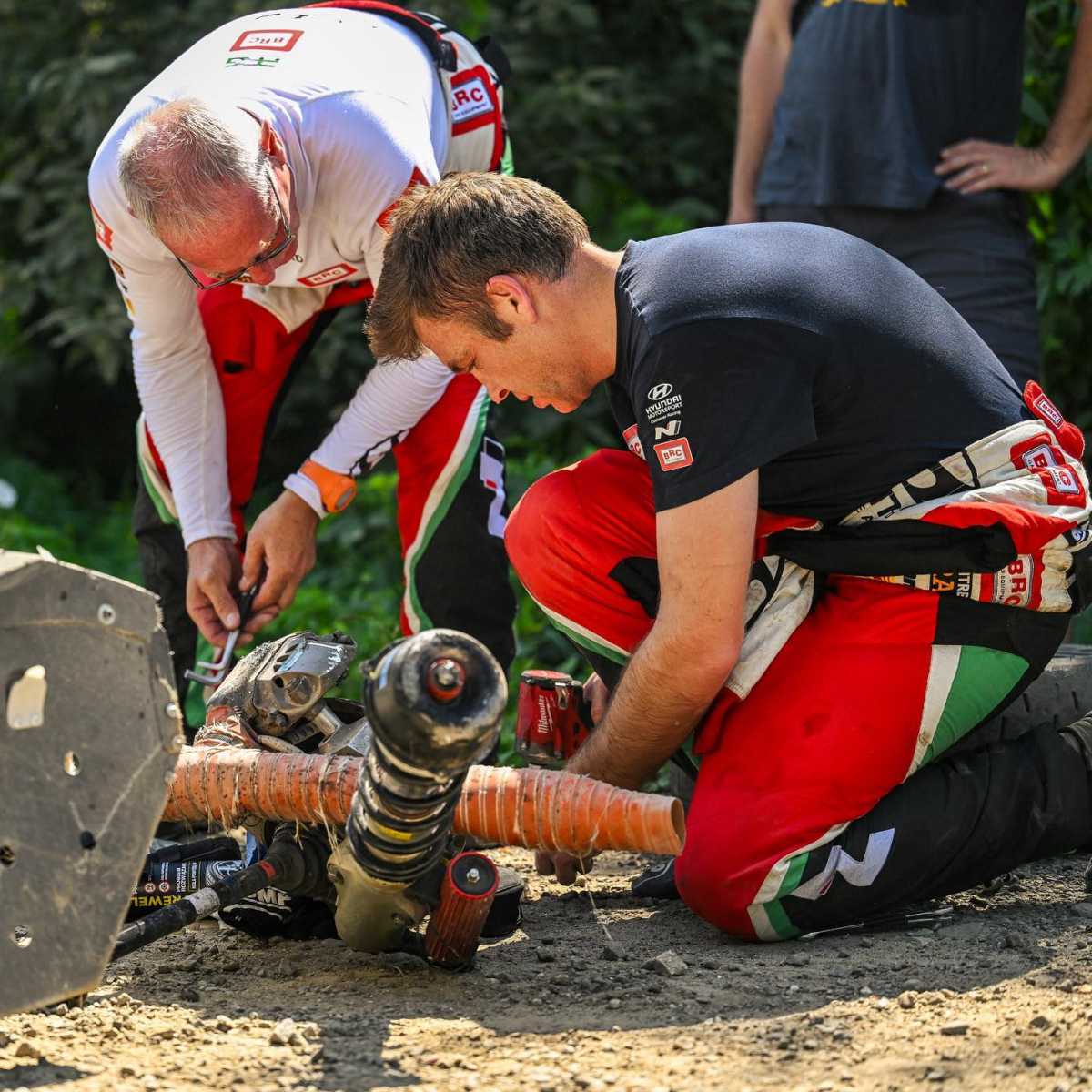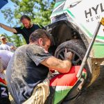 Los neozelandéses Hayden Paddon y John Kennard (Hyundai i20 N Rally2) lograron en la penúltima cita del Campeonato de Europa de Rallys, el Barum Czech Rally Zlín, proclamarse campeones del ERC 2023. Y todo a pesar de un serio problema mecánicos con su unidad, la que intentaron reparar sin éxito, teniendo que tomar el camino del abandono, aunque no les impidió proclamarse campeones. Publicamos las fotos del momento del accidente e intento de reparación del Rally2.