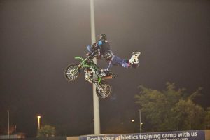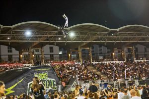 En la primera parte del espectáculo, los pilotos de FMX dieron su particular recital de trucos, con soberbios Back Flip Tsunami, Rock Solid, Back Flip Cordobés, múltiples whips o plegadas, etc., que levantaron al público de sus asientos, especialmente cuando los ejecutaron en un carrusel sin solución de continuidad. A continuación, los riders tomaron los mandos de sus MTB y se lanzaron por la rampa de 14 de metros de altura sobre el nivel del piso para tomar el impulso necesario para hacer sus diabluras en el aire. Entre estas destacaron algunos Front Flip Seat-Grab, Twister, y Cash Roll, entre otros trucos de alta dificultad.