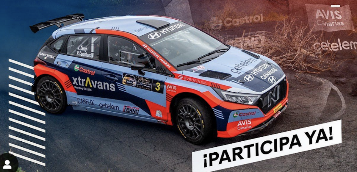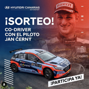 ¿Te gustaría sentir la ADRENALINA del Rally? ¡Hazlo convirtiéndote en el copiloto del Hyundai #i20NR2 con @jancernyracing en el circuito de Maspalomas el día 24 de agosto😎