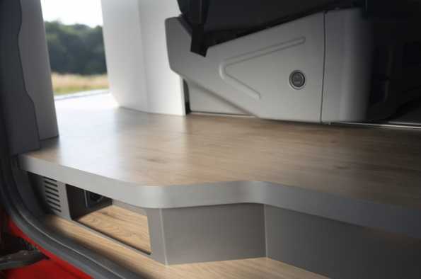 Los aficionados a las furgonetas camperizadas ya se habrán dado cuenta de que la nueva Nugget dispone de dos tomas de corriente externas. Una sirve para alimentar las luces del habitáculo, sus enchufes y otros equipos de hogar cuando esta toma se conecta a la red eléctrica del camping.