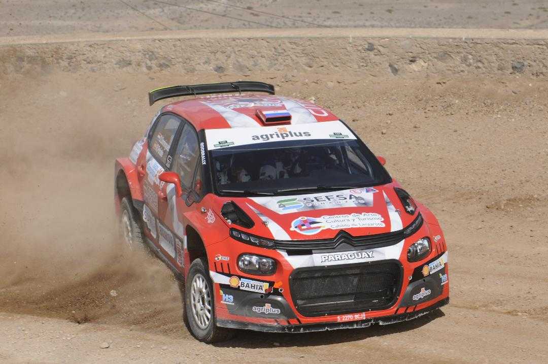 El piloto paraguayo, acompañado por el grancanario Rogelio Peñate, acumuló una importante cantidad de kilómetros a los mandos del Citroën C3 Rally2 (rojo) que Sports&You desplazó desde Portugal. El noruego con la otra unidad (blanca) y Patrik Barth a su derecha, no rodó durante tanto tiempo. Junto a los mecánicos del equipo Proracing Competición, centró la mañana en pulir los reglajes de su unidad de la marca francesa, apurando el horario previsto para extraer el máximo de conclusiones con las que trabajar en las próximas horas con los técnicos.