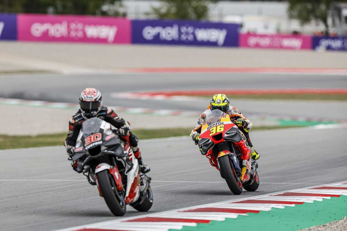 Bajo un cielo que amenazaba lluvia, Marc Márquez y Joan Mir finalizan la sprint race del Gran Premio de Catalunya en undécima y vigesimoprimera posición, respectivamente.