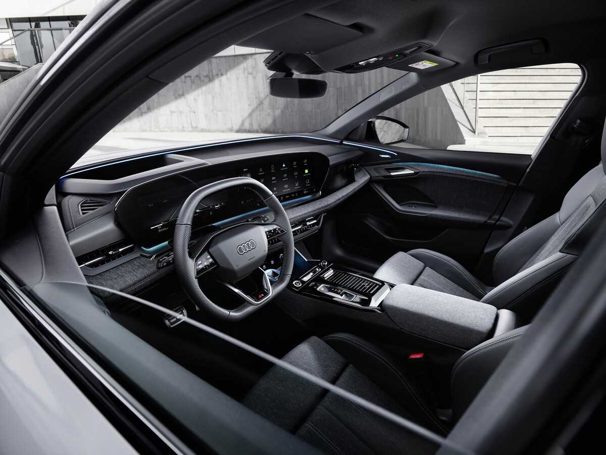 Por encima del denominado Softwrap, el interior está dominado por un “escenario digital” con la pantalla panorámica Audi MMI y la pantalla MMI para el acompañante, ambas perfectamente integradas en el diseño, dotando al interior de una gran sensación de amplitud. La pantalla panorámica Audi MMI independiente presenta un diseño curvado y tecnología OLED, y está compuesta por el Audi virtual cockpit de 30,2 centímetros (11,9”) y la pantalla táctil MMI touch de 36,8 centímetros (14,5”). El área al alcance del conductor está diseñada en forma de arco, como refleja la pantalla curvada, cuya forma recuerda al Singleframe que define el diseño de Audi. Una iluminación ambiental especial hace que por la noche la pantalla parezca flotar.