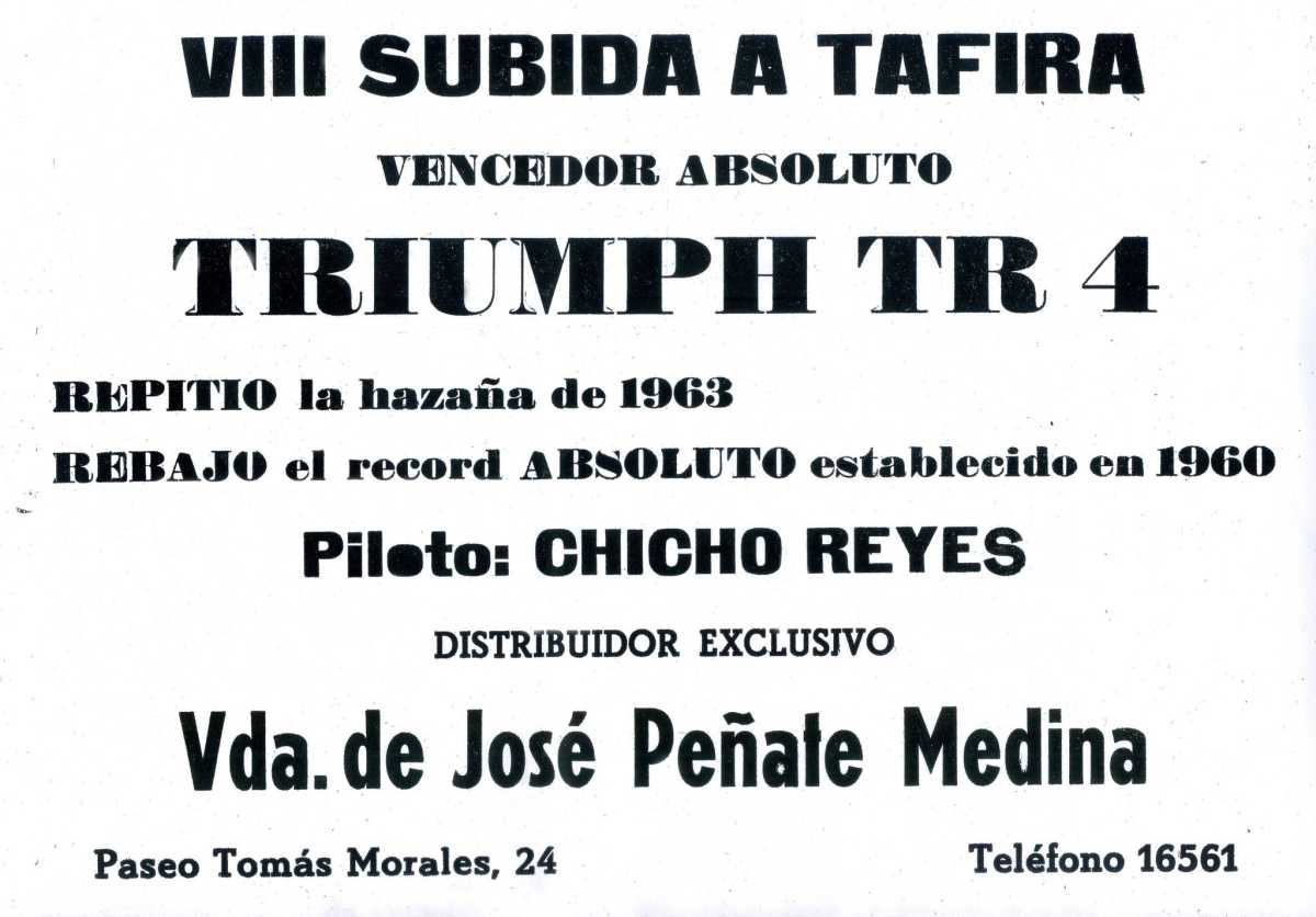 La subida a Tafira tendría una gran relevancia en la historia del Automovilismo de nuestro Archipiélago, por ser la prueba con la que daría comienzo la era de las Subidas en Cuesta en Canarias, además de ser la más celebrada en las décadas de 1950 y 1960.
