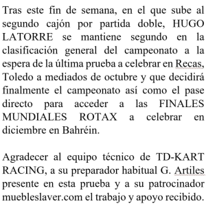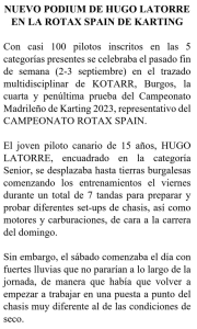 Gran noticia la que aporta el joven deportista grancanario Hugo Latorre, que ha logrado un nuevo podium en la Rotax Spain de Karting