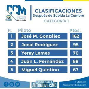 Pues con la actualización del Campeonato de Montaña de Canarias se confirma que matemáticamente somos campeones del Grupo H90 y de la categoría 6, además de que volvemos a estar quintos. ¡¡Yupiiiii Seguimos sumando gracias a nuestros patrocinadores, que lo han hecho posible.