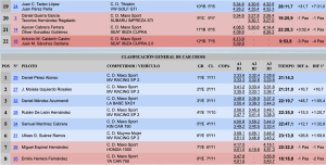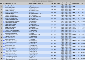 Terceros, lejos de los anteriores, finalizaron Javier Fránquiz y Jordi Díaz (Mitsubishi Space Star P), que se quedaron a 27,9 de la cabeza, pero superando en 4.9 de Gustavo Sosa y Eduardo González (Skoda Fabia Rallye 2), cuartos.