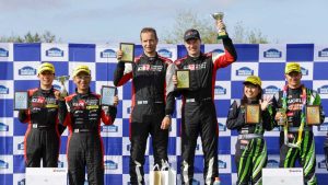 El director del equipo Toyota Gazoo Racing llevó a la meta en primera posición y el padre de Takamoto Katsuta, Norihiko, que consiguió un doblete con el otro Yaris en el rallye de tierra de Obihiro.