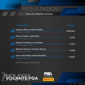 La tarde fue muy placentera para Joaquín Pérez y Adrián Muñiz, que con mano de hierro ganaban de nuevo y certificaban el título. Tras ellos, Álvaro Castro contenía a Diego Camuñas por sólo 4 segundos, logrando así hacerse con la Beca PXP24 y sacándose la espina del pasado año. A pesar de conformarse con la tercera plaza, muy buen rallye de Camuñas, que lograba un hito en la última especial, frenar la racha de Joaquín Pérez, que hasta el momento había marcado 36 scratchs consecutivos, lo cual da una idea de su dominio en esta temporada.