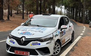 El joven Ulises Avella, acompañado a su derecha por el no menos joven Gabriel Espino, lograron en el Rally Ciudad de Telde realizar una soberbia actuación en el Renault Clio Rally 5), rodando en la séptima plaza a falta de dos tramos, hasta que un pinchazo y un problema mecánico les obligó a tomar el camino del abandono.