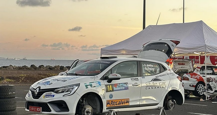 El joven Ulises Avella, acompañado a su derecha por el no menos joven Gabriel Espino, lograron en el Rally Ciudad de Telde realizar una soberbia actuación en el Renault Clio Rally 5), rodando en la séptima plaza a falta de dos tramos, hasta que un pinchazo y un problema mecánico les obligó a tomar el camino del abandono.