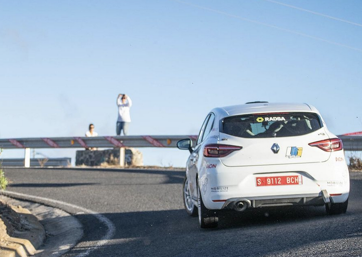 El joven Ulises Avella, acompañado a su derecha por el no menos joven Gabriel Espino, lograron en el Rally Ciudad de Telde realizar una soberbia actuación en el Renault Clio Rally 5), rodando en la séptima plaza a falta de dos tramos, hasta que un pinchazo y un problema mecánico les obligó a tomar el camino del abandono.