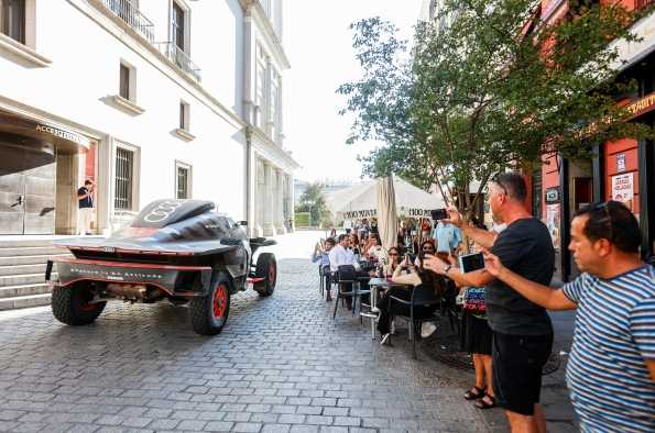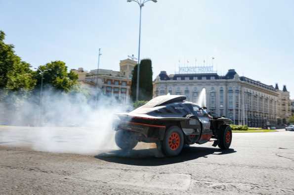Del desierto a la ciudad: Audi no sólo utiliza la avanzada tecnología de propulsión del RS Q e-tron en el Rally Dakar, sino que también la demuestra en las metrópolis. Tras el recorrido urbano del innovador prototipo de rally por Hamburgo hace un año, ahora le tocaba el turno a Madrid. En la ciudad del equipo español de Audi, formado por Carlos Sainz y Lucas Cruz, el RS Q e-tron realizó un tour por lugares de interés muy conocidos, despertando la curiosidad y la emoción de los transeúntes a su paso. La aparición del embajador de la alta tecnología de Audi generó mucha simpatía e imágenes únicas.