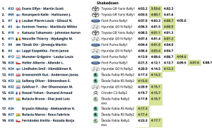 Teemu Suninen, en acción por primera vez desde el Secto Rallye de Finlandia en agosto, fue el piloto de Hyundai i20 N mejor clasificado, cuarto. Aventajó a Takamoto Katsuta, de Toyota, en dos décimas de segundo, mientras que Thierry Neuville, también pilotando un Hyundai, quedó una décima por detrás.