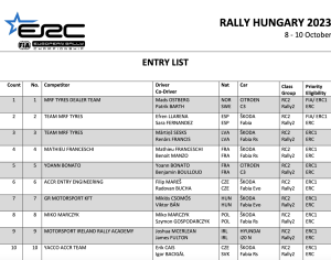 Publicamos la lista de inscritos del Rally de Hungría, cita del Campeonato de Europa de Rallys (ERC) y del Campeonato de Hungría de Rallys 2023.