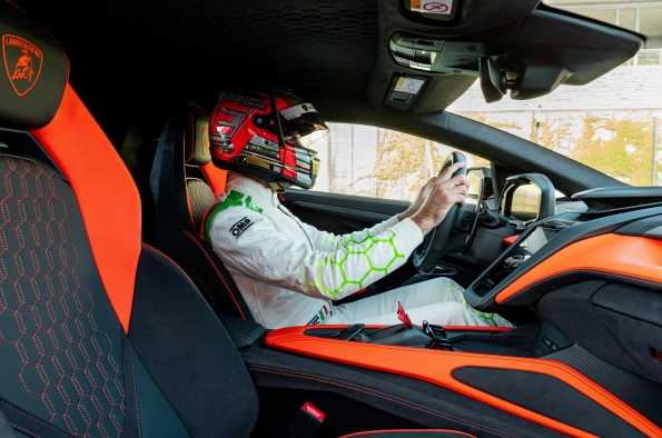 Andrea Caldarelli, piloto de Squadra Corse, se pone al volante del Lamborghini V12 híbrido en el Circuito de Vallelunga