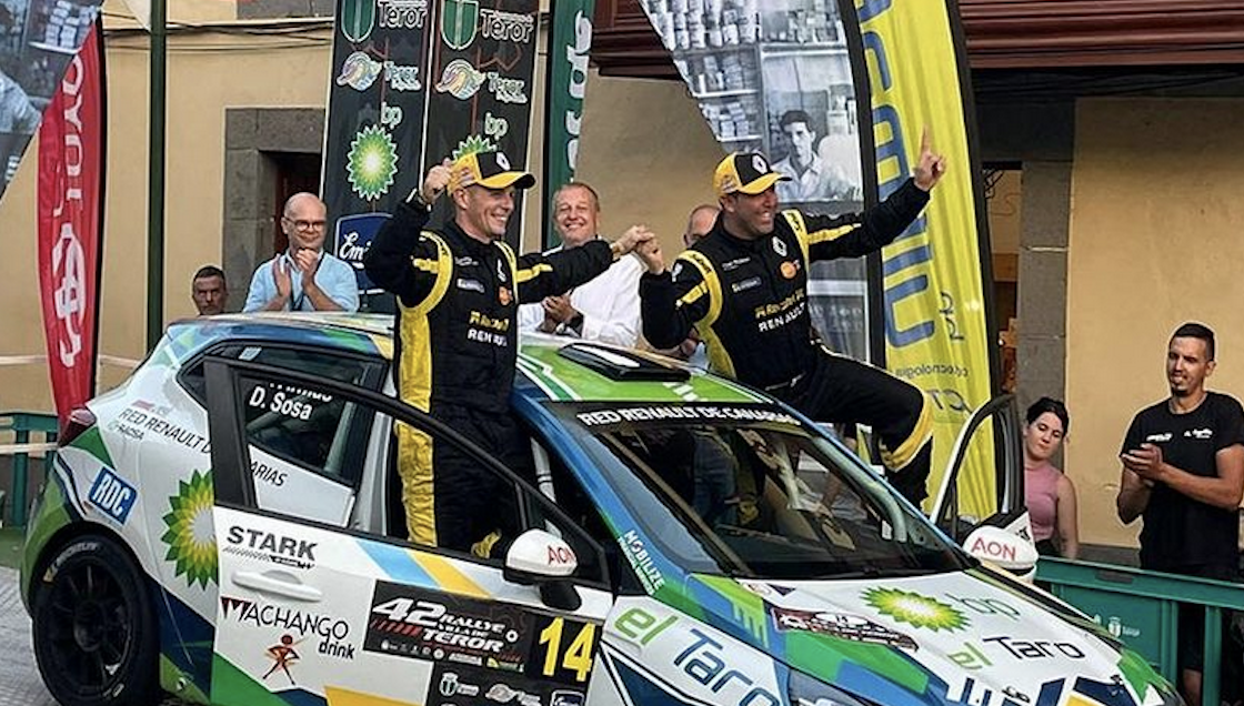El copiloto grancanario Daniel Sosa, que esta temporada está compitiendo de nuevo en tierras peninsulares junto a Unai De la Dehesa (Renault Clio Rally4), volvió a competir en su isla, Gran Canaria, junto a Noé Armas (Renault Clio Rally5), consiguiendo la victoria en la Clio Trophy Canarias en el Rally Villa de Teror.
