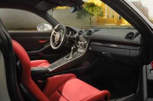 En el interior, el cuero rojo Guardia de los asientos contrasta con el negro del salpicadero y del revestimiento de los paneles de las puertas. El paquete interior presenta un acabado anodizado en negro aluminio. Los radios del volante también son negros. Un detalle destacado es el bordado en cruz con los colores de la bandera mexicana y el logotipo de TAG Heuer. Este pespunte verde, blanco y rojo puede verse, por ejemplo, en el aro del volante y en el salìcadero. Además, la inscripción “GT4 RS Panamericana Special” figura en los umbrales de las puertas y en el posavasos del lado del acompañante. Otro rasgo destacado del interior es el emblema “La Carrera Panamericana” junto con la silueta de un casco de competición de época, que los expertos de Porsche Exclusive Manufaktur han grabado en los reposacabezas de los asientos.