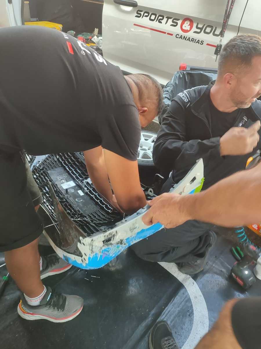 Ahí se activó también el equipo de asistencia y cuando llegué pude ver la sincronización, profesionalidad, perfección y rapidez con la que dejaron de nuevo el vehículo todos los chicos de Sports & you Canarias como si nada hubiera pasado! Además de que hice a uno de los miembros darse un «paseo» hasta la cumbre a buscar las piezas…