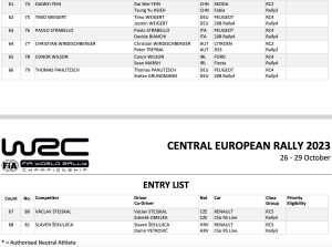 Publicamos la lista de inscritos del Rally Europa Central, cita del Campeonato del Mundo de Rallys (WRC) 2023.