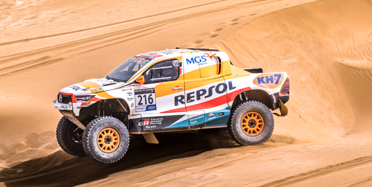 En su quinta participación en Marruecos en coche, Esteve asegura que es un rally que le gusta. «Es un terreno en el que nos encontramos cómodos, con mucha navegación y una parte final de arena en Merzouga. Todo lo que se pone en práctica en Marruecos a nivel deportivo es lo que nos encontraremos en el Dakar 2024», explica. Y añade: «Las etapas del Rally de Marruecos siempre son duras, a veces más que las del Dakar; lo que pasa es que son la mitad de días». Esta dureza será un bienvenido banco de pruebas tanto para los lubricantes como para el combustible renovable de Repsol, ambos utilizados en el Toyota Hilux T1+. Este último se produce en un 75% a partir de materiales de origen no fósil.