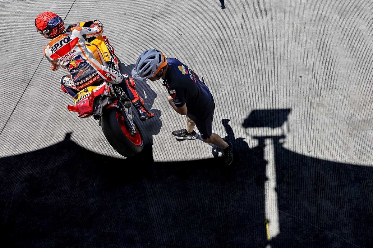 Marc Márquez y Joan Mir sufren dos caídas que los han dejado fuera de carrera en el domingo del Gran Premio de Indonesia.