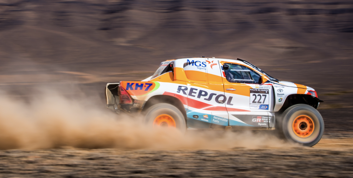 Remontada del Repsol Toyota Rally Team en el Rally de Marruecos. Isidre Esteve y su copiloto Txema Villalobos han firmado una gran etapa este domingo, mostrando un ritmo muy veloz a bordo del Toyota Hilux T1+ número 227. Pese a tener que adelantar a muchos vehículos en la especial de 296 kilómetros, un bucle alrededor de Zagora, el equipo español sólo ha cedido 27 minutos y medio al líder después de 3 horas y 20 minutos de carrera. Esteve ha finalizado 25º en la etapa (18º de la categoría T1). En la general, el Repsol Toyota Rally Team recupera nada menos que 30 puestos y se coloca en la 32ª posición absoluta, la 22ª en T1.