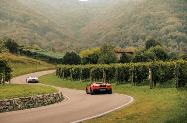 A partir de ahora Lamborghini tendrá dos corazones latiendo: el rugido arrollador del V12 y la energía innovadora de sus motores eléctricos. En su primera salida a carretera y pista, el Revuelto[1], nacido en Sant’Agata Bolognese, recorrió en silencio las calles boloñesas del centro de la ciudad, atravesó las colinas de Valdobbiadene, continuó hacia los sinuosos senderos de montaña del Monte Grappa y terminó su recorrido en el circuito Piero Taruffi Vallelunga, cerca de Roma.