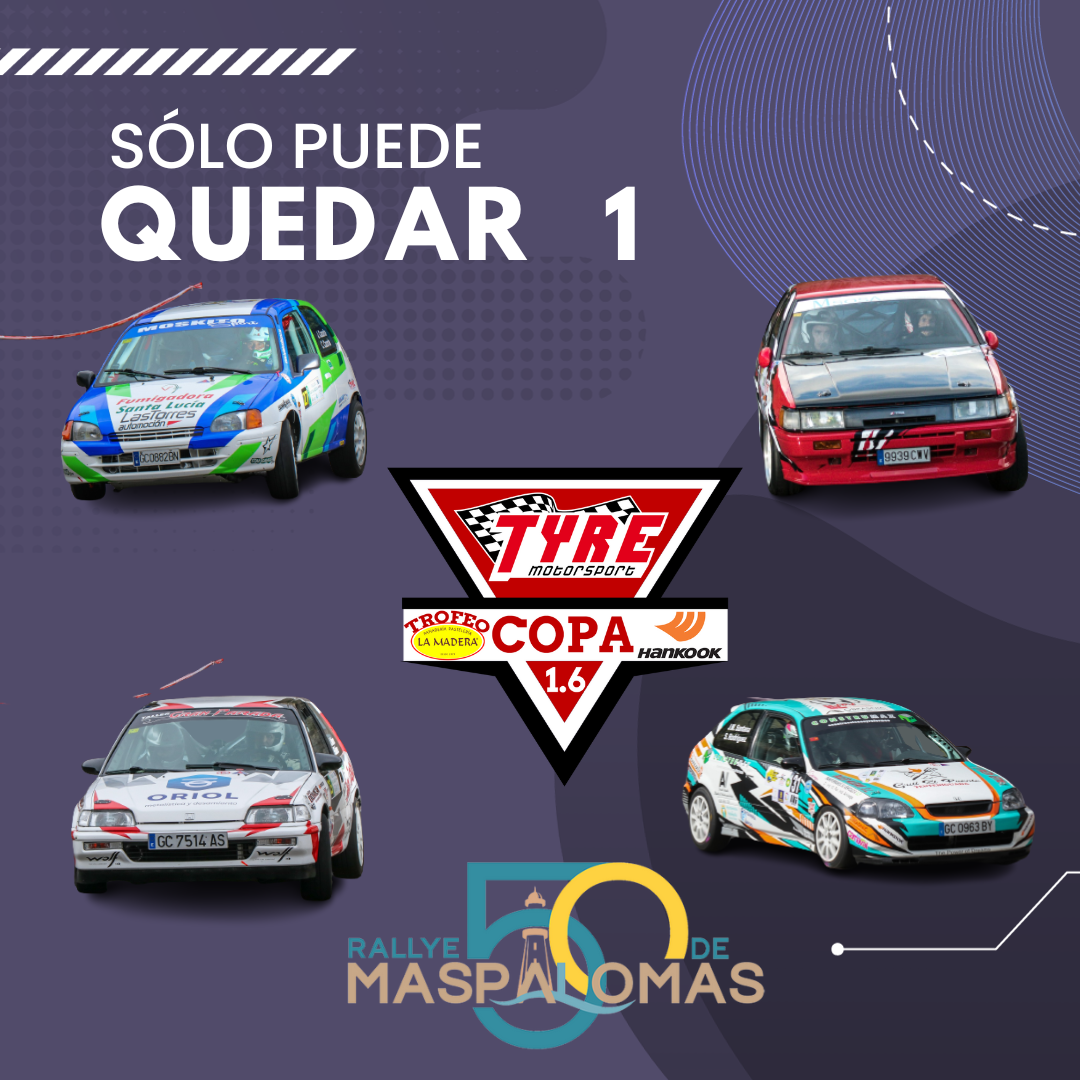 La sexta edición de la Copa 1,6 Tyre Motorsport Hankook, Trofeo Pastelería La Madera se decidirá, este fin de semana, en el 50º Rallye de Maspalomas, con un duelo que se presenta apasionante hasta el último metro del último tramo entre los 4 equipos que aún mantienen opciones matemáticas de proclamarse campeones.