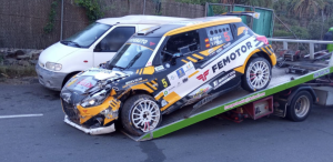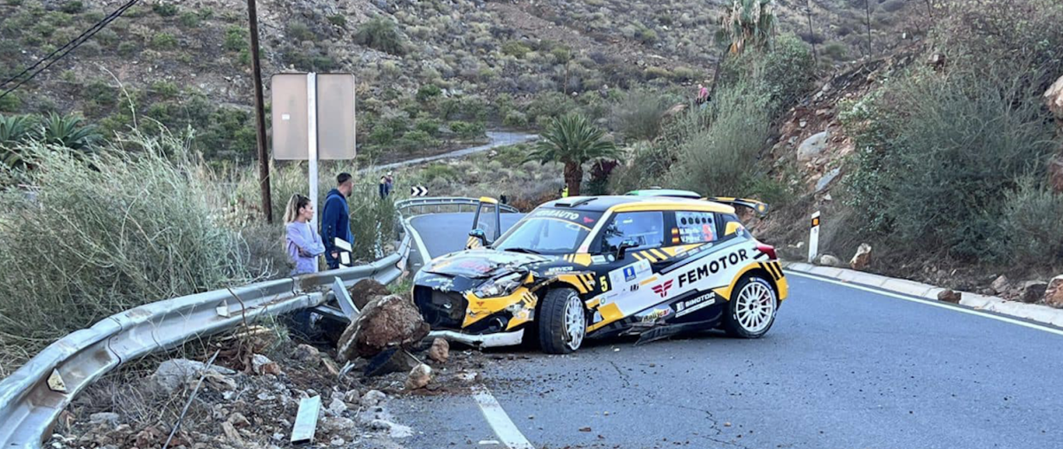 El Rally de Maspalomas no será de grato recuerdo para el tinerfeño Manolo Mesa y el palmero Víctor Pérez, puesto que una salida de carretera con su Suzuki Swift R4lly S a muy alta velocidad no sólo los dejó fuera de competición, sino que a los dos con fuertes dolores.