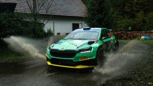 Las posibilidades de Mikkelsen de hacerse con el título sólo por su ritmo se desvanecieron el viernes por la mañana cuando su Škoda Fabia RS Rally2 se salió de la carretera, un percance que le costó unos 10 minutos.