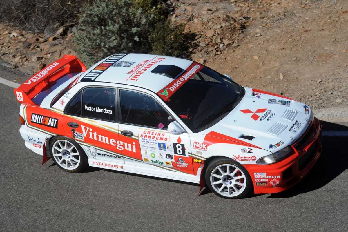 En primer lugar contábamos con participación de Víctor Mendoza Guillén que después de algunos intentos de sacar su Mitsubishi Lancer EVO III, consiguió estar en la salida de Fataga realizando un excelente papel, consiguiendo la 9ª posición de la general a tan solo 0,368 décimas de la octava plaza. Fue segundo de la H90 y de la clase 6.
