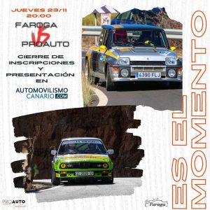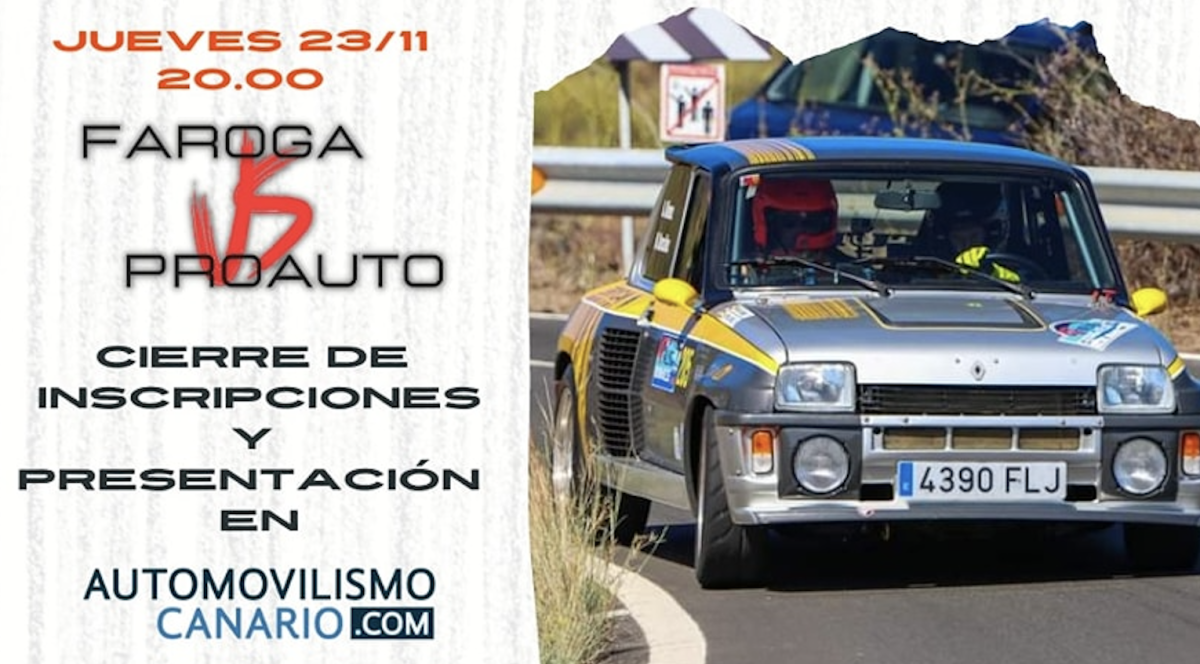 La “Faroga vs Proauto”, que se celebrará en el sur de la isla de Gran Canaria, en el Circuito de Maspalomas el próximo 2 de diciembre, será protagonista a las 20:00 horas de este jueves en las redes de Automovilismocanario, donde Dani Ponce y Marcos González contará la última hora del evento.