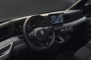 Nuevo Renault Master ofrece un interior de gran calidad, similar al de los turismos de la gama. El salpicadero en forma de S, orientado hacia el conductor, ayuda a aumentar el espacio en el habitáculo. Recurre a materiales de alta calidad y su pantalla de 10 pulgadas, de serie en toda la gama, resulta muy agradable a la vista. Los tonos oscuros de los revestimientos acentúan aún más la impresión sumamente acogedora de este moderno habitáculo. El volante, procedente de la gama de turismos, es ahora más vertical y regulable en altura y profundidad, permitiendo a cada uno encontrar la mejor posición de conducción. En las versiones automáticas la palanca selectora se sitúa ahora en el volante para mayor confort y seguridad. Todo ello para aumentar la calidad percibida.