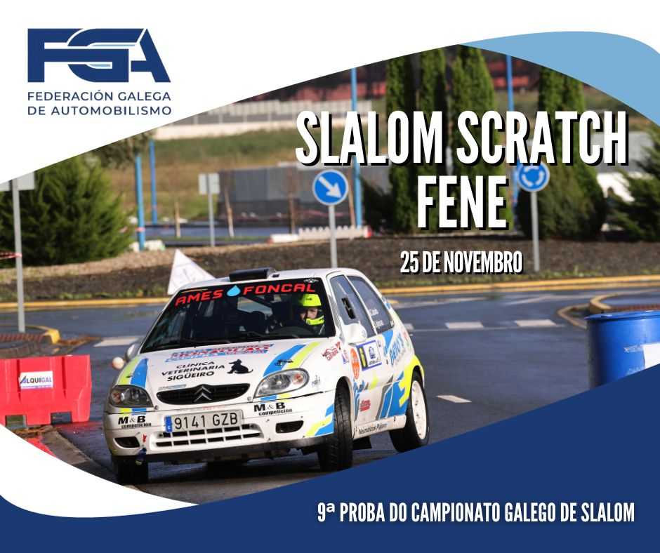 Este próximo sábado, el barrio de San Valentín, en Fene, será el escenario de la última cita del campeonato gallego de slalom. El recorrido escogido por la Escudería Scratch Fene para tal fin empleará las glorietas de acceso y salida del barrio, así como el aparcamiento y centrará el parque de custodia en la zona comprendida entre el colegio y el pabellón de A Xunqueira.