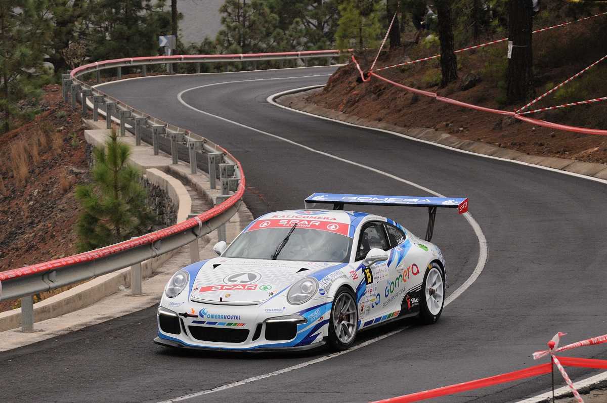Empezó con el tercer mejor registro en entrenos y apenas pudo completar unos metros en la carrera 1 por avería de su Mitsubishi Lancer Evo X “Monster” en la misma línea de salida. Pero en la carrera dos, el grancanario Miguel Cabral subió como una exhalación y registró un 2´38´´012, que pasa a ser la nueva plusmarca de la categoría y que le valió para subir a lo más alto del púdium. El puesto dos fue para Ángel Bello (Audi R8 LMS Ultra Evo), que había sido el más veloz en la manga de entrenamientos y en el primer ascenso oficial, pero que finalmente no pudo con el empuje de Cabral, de quien le separó un segundo. Tercero fue el ya virtual campeón regional, José Manuel González (Porsche 911 991 GT3) y cuarto Ángel “Tito” Correa, que firmó un segundo puesto con el Citroën DS3 WRX en la carrera uno, en la que el piso estaba mojado por la zona de meta. Tras él, quinto, finalizó Abel Mesa con su Evo X.