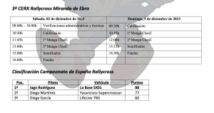 Iago Rodríguez, mostraba su confianza en completar un fin de semana que le permita hacerse con el título: “Llegamos con una ligera ventaja sobre nuestros rivales, y nuestro objetivo es seguir demostrando nuestro buen nivel en esta disciplina y llevarnos para Galicia el que sería nuestro primer título nacional. Como siempre en Rallycross, las carreras al sprint harán que no haya margen al error, ya que las diferencias son mínimas y todos los detalles cuenta, nuestro equipo ha realizado una revisión a fondo de nuestro La Base SX01 para tener todas las garantías».